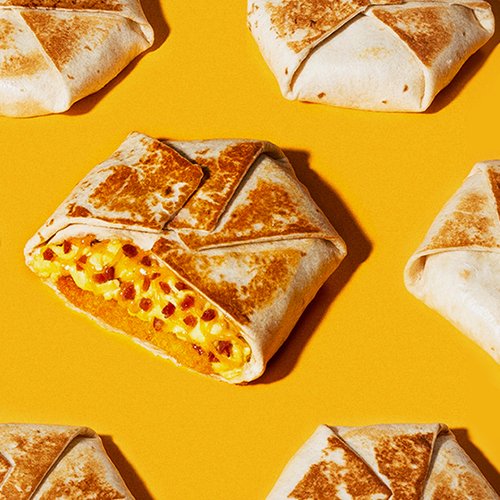 A grilled flour tortilla filled with flavorful bacon, fluffy cage-free eggs, and warm Nacho Cheese sauce. Eggs are American Humane Society Certified cage-free.